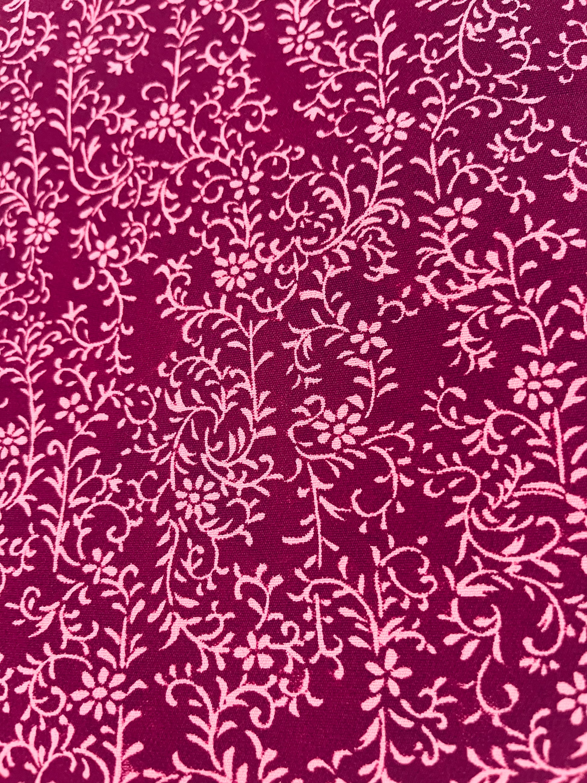 • Rich crimson base with delicate floral pattern