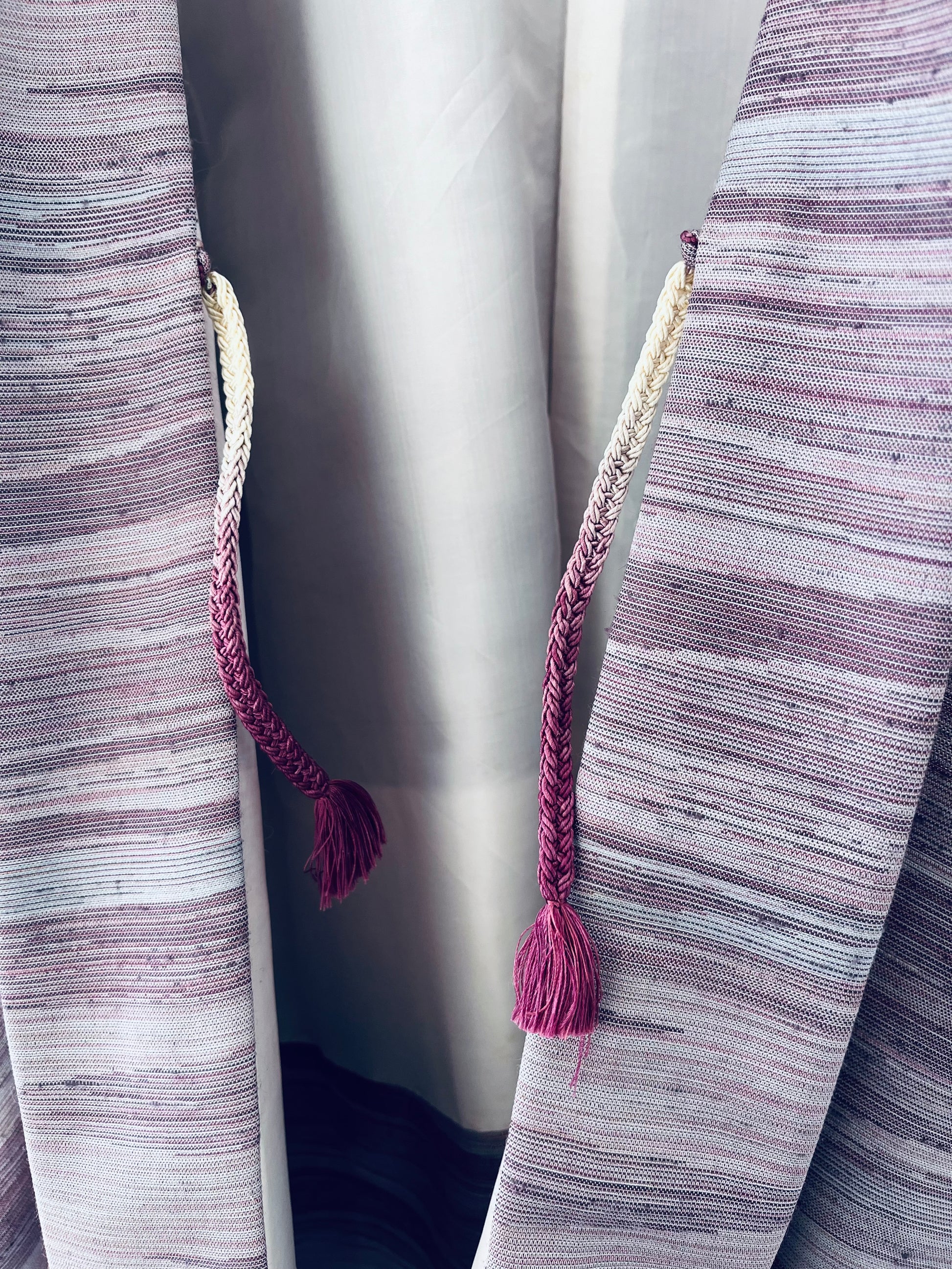 Soft mauve silk, layered in drifting striations — like mist moving across stone.