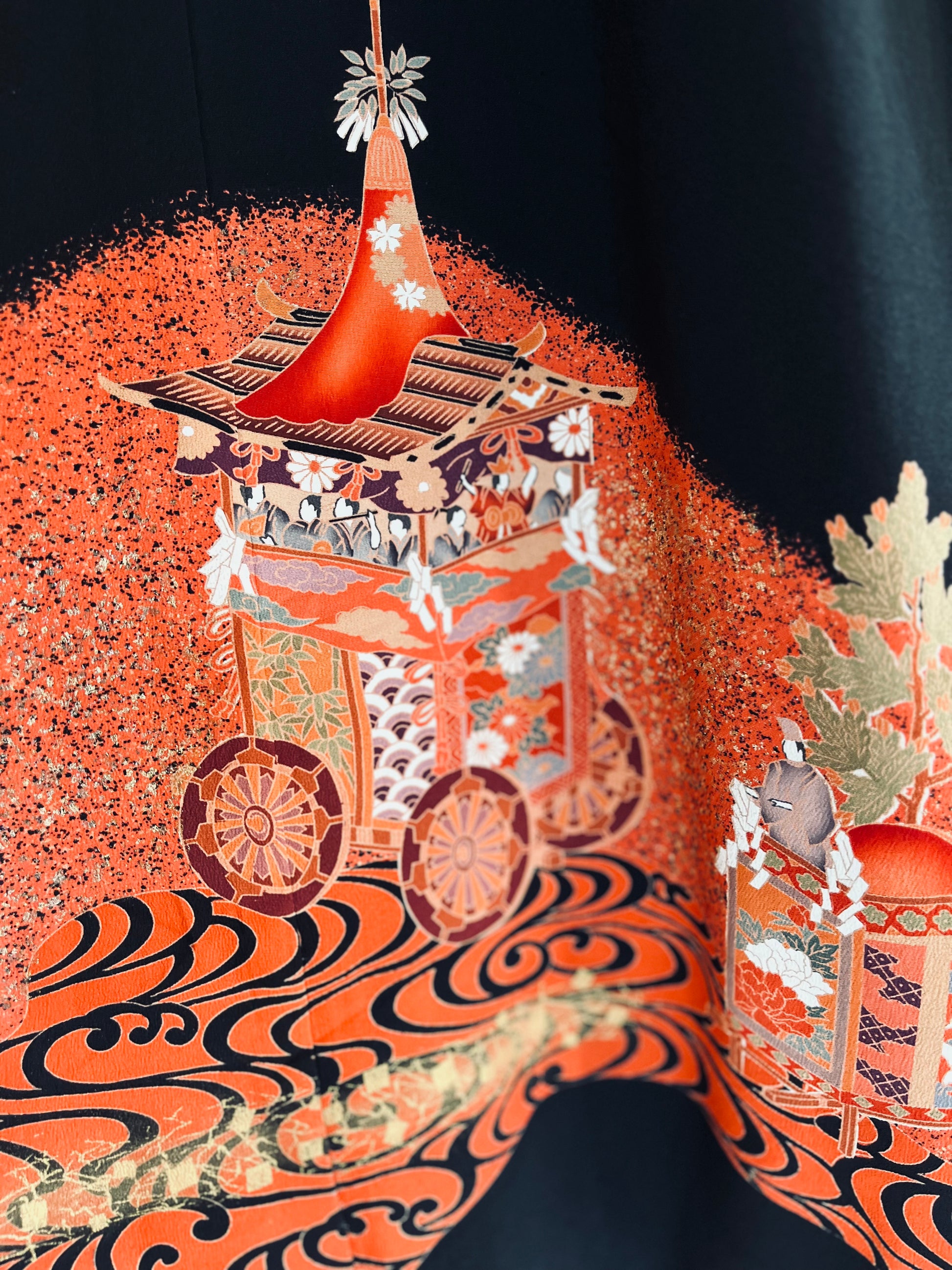 Kyōto Parade Kimono - Vintage Japanese Kurotomesode - One of a kind - A true collector’s piece